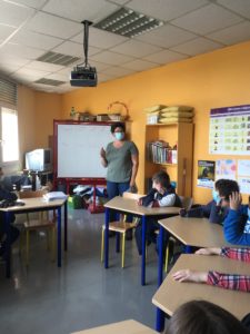 Emilie décrit aux élèves de 6eme A les différentes plantes et leur bonne association : fraisier avec oignon, trois sortes de menthe pour éloigner les fourmis et les pucerons, ciboulettes, passiflore, oeillet de poète, salade, petits pois, radis…Chacun choisit ce qu’il veut planter.