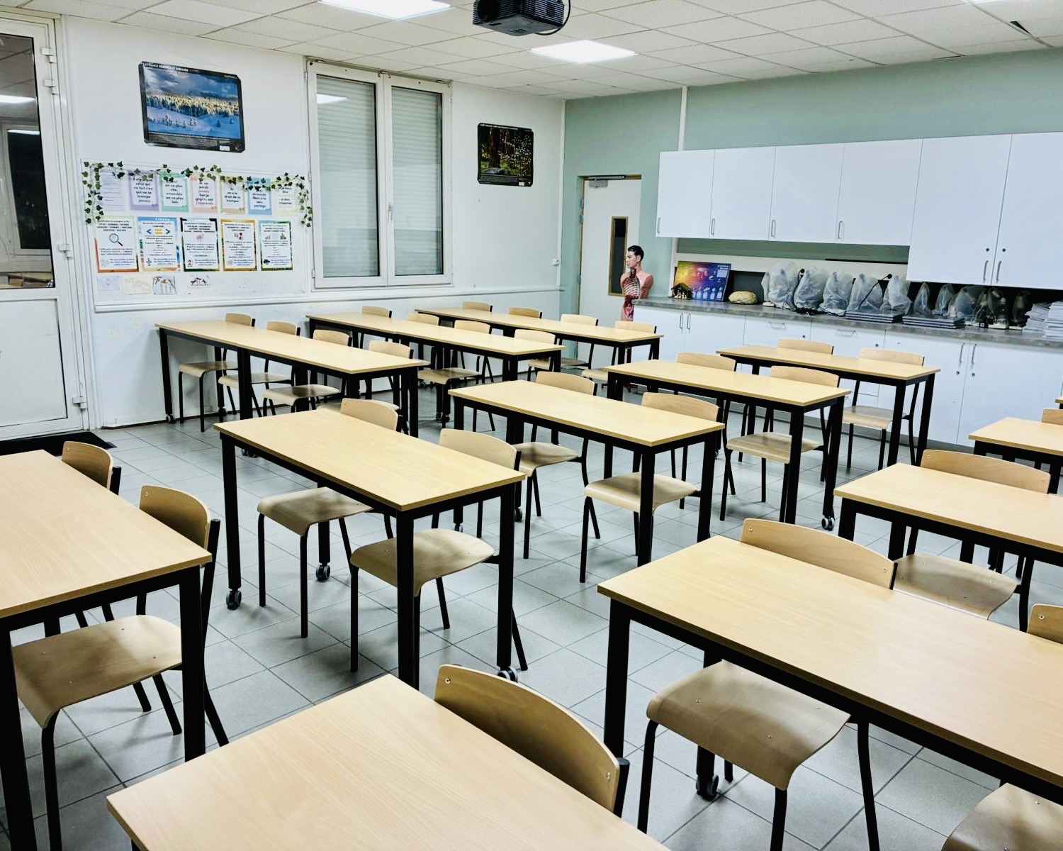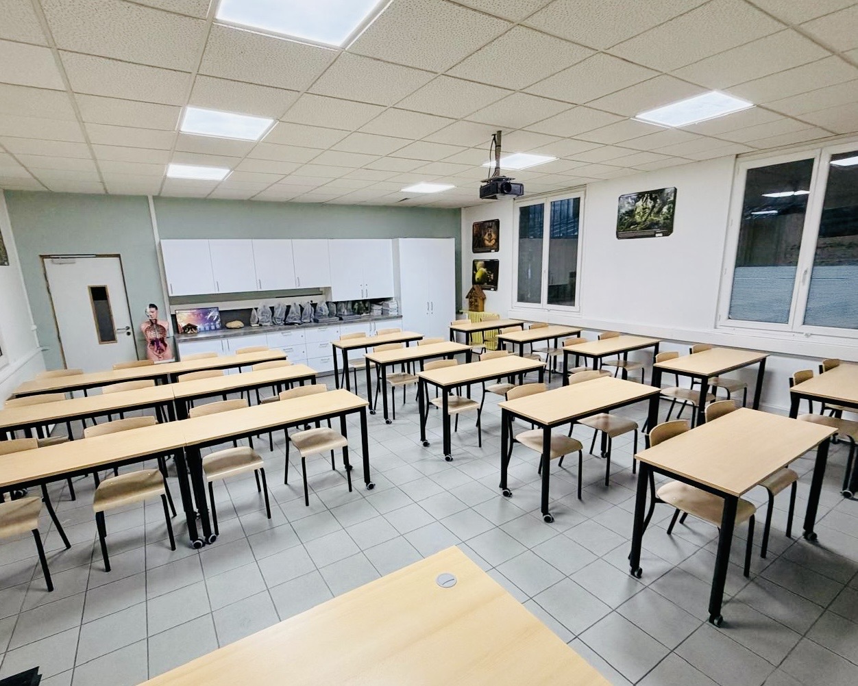 Rénovation des laboratoires Nos laboratoires de Sciences Physiques et de SVT ont été entièrement rénovés : peinture, mobilier, armoires… Tout est conçu pour offrir aux élèves un environnement agréable et stimulant, propice à l’expérimentation et à la découverte scientifique. Partager sur : ID 6944