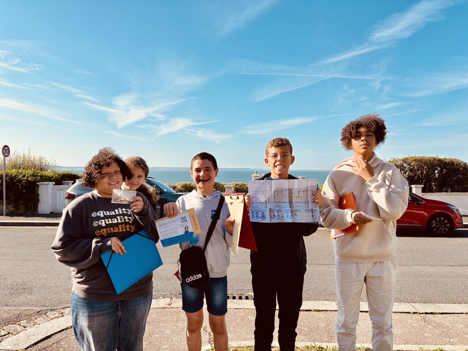 Dans le cadre de l’opération nationale « Les enfants du patrimoine », portée par le CAUE 76, les élèves de 3ème Berlin de notre collège ont participé ce vendredi au jeu de piste « Sainte-Adresse Express ».