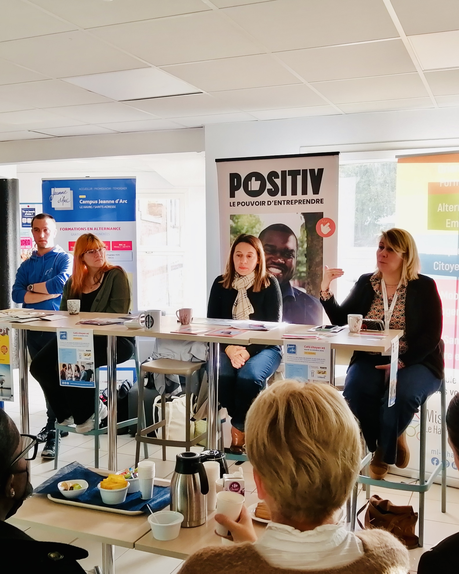 Les apprentis de première année du CFA ont participé à la cinquième édition du Café citoyen, un moment d’échange privilégié organisé autour d’un café, en présence de plusieurs acteurs locaux : LE SPOT (Service pour s’orienter et se trouver), la Mission Locale Le Havre Estuaire Littoral, l'assiciation POSITIV et la Fondation Le Refuge.
