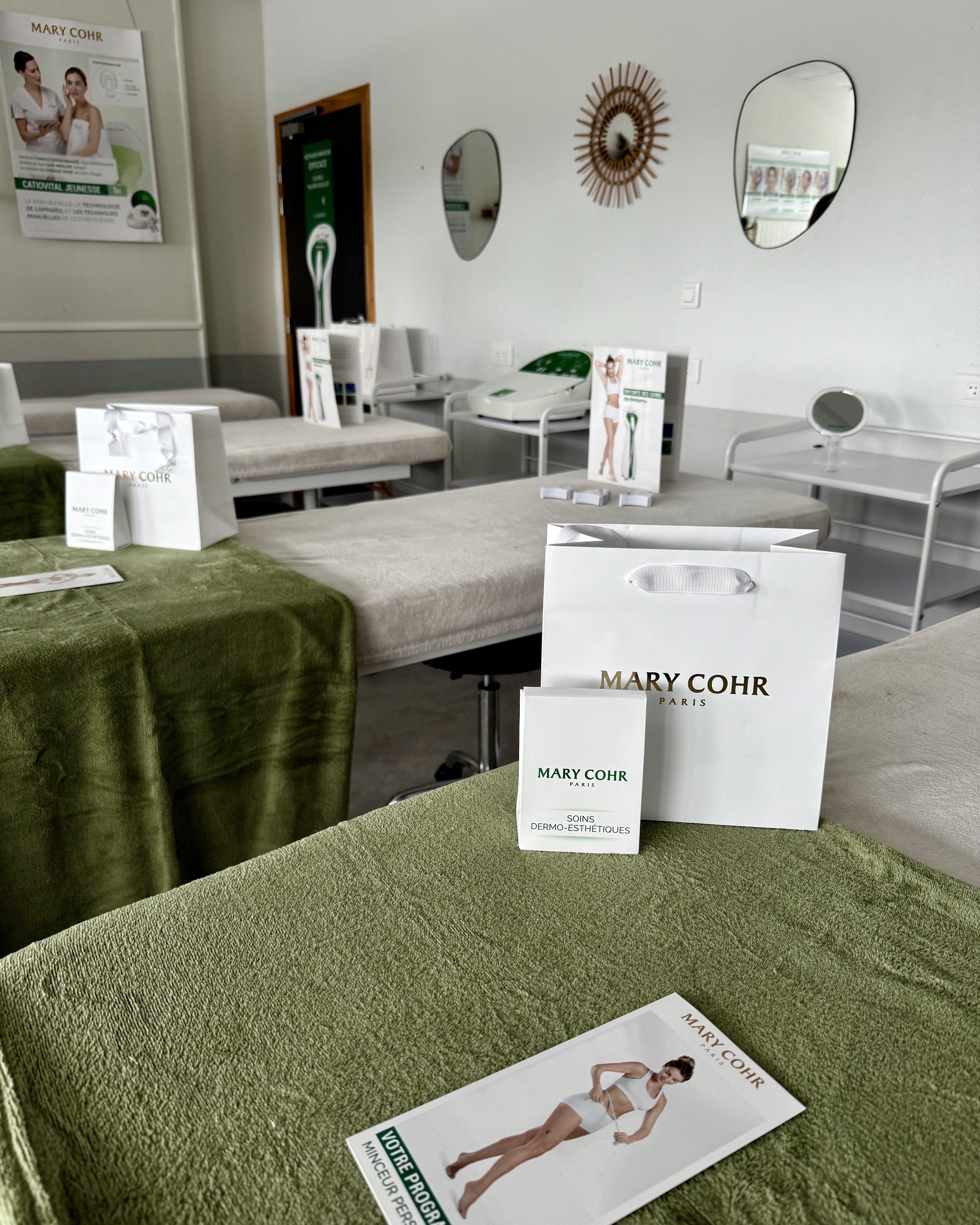 Les étudiantes de 2ᵉ année BTS MECP – option Formation Marques ont récemment inauguré leur nouvelle salle de pratique, entièrement repensée aux couleurs de notre partenaire Mary Cohr.