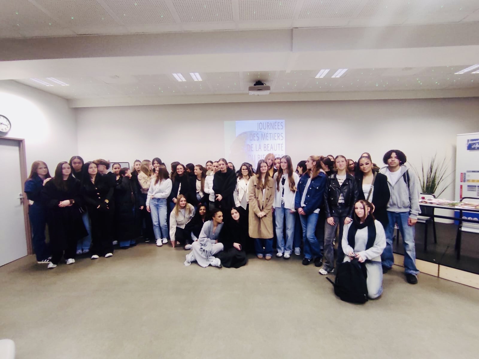 Dans le cadre de leur parcours d’orientation, les élèves de 2nde BAC PRO Esthétique Cosmétique Parfumerie participent chaque année à une immersion dédiée aux métiers de la Beauté et du Bien-être, en partenariat avec le lycée Jules Le Cesne.