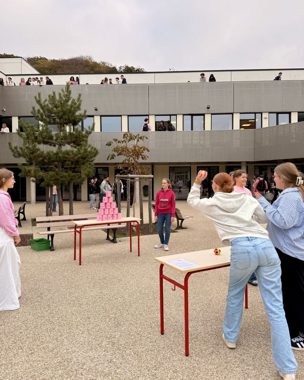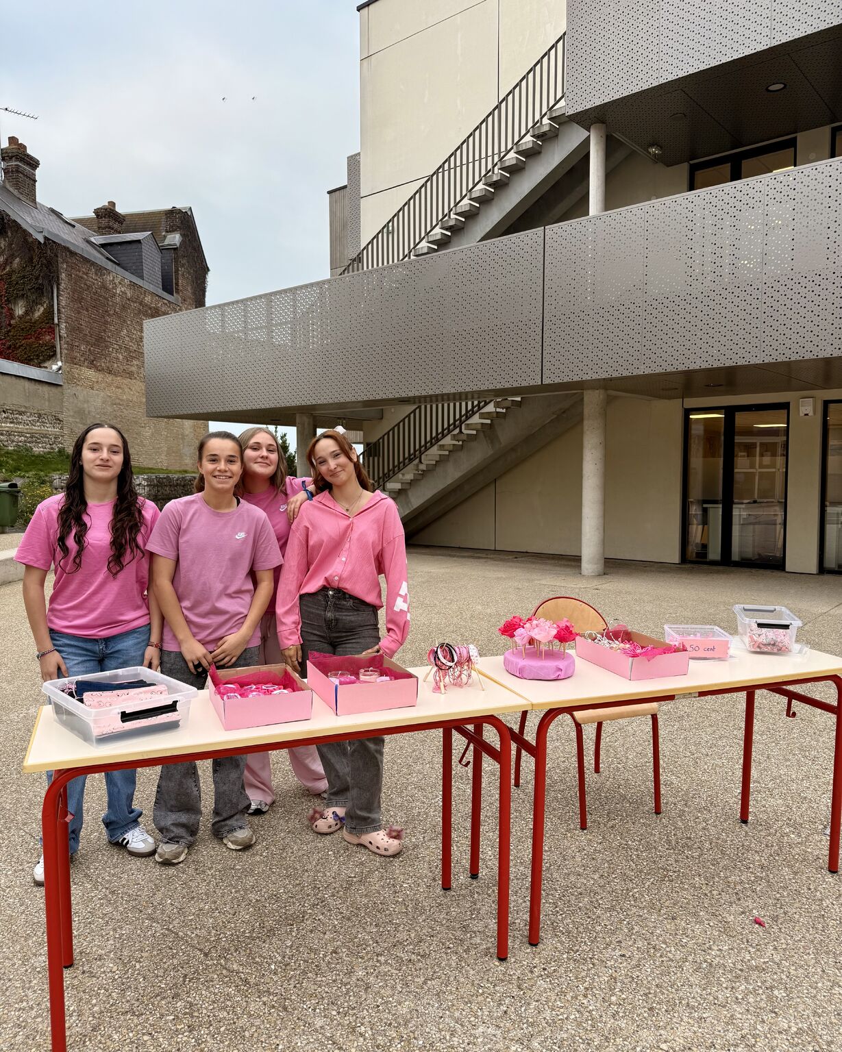 La mobilisation s’est achevée par une action concrète dans la cour du lycée : jeux en bois, chamboule-tout, quiz en anglais, photocall et vente d’objets confectionnés par les élèves ont animé la journée. Une belle vague de rose a rassemblé l’ensemble de la communauté éducative, avec pour objectif de sensibiliser et de collecter des fonds au profit de CERICA.